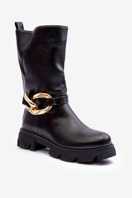 Modne Botki Workery Z Ozdobą Czarne Ollia
