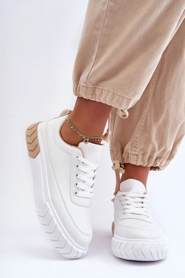 Damskie Buty Sportowe Na Platformie Biało-Beżowe Henley