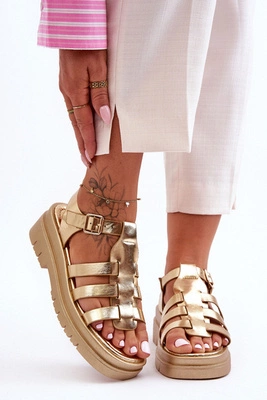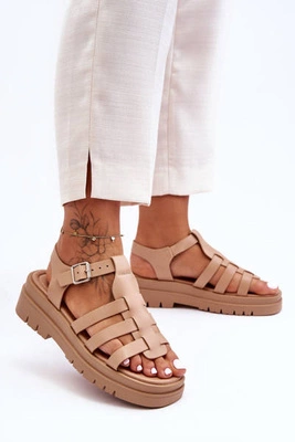 Skórzane Sandałki Na Obcasie Gładkie Beżowe Inspire Me!