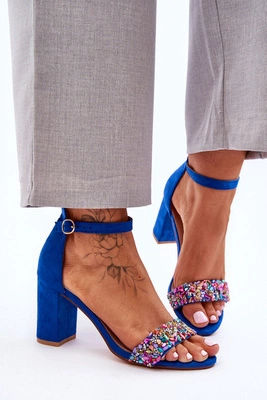 +5Zamszowe Klasyczne Sandały Na Niskim Obcasie Niebieskie Honeymoon
