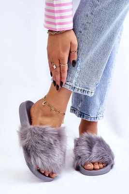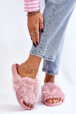 Damskie Klapki Na Płaskim Obcasie Z Futerkiem Nude Lussie
