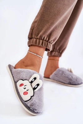 Damskie Futrzane Papcie Z Królikiem Szare Trisha