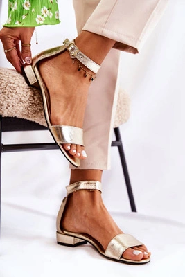 Damskie Skórzane Sandałki Na Płaskim Obcasie Złote Morlee