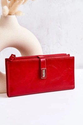 Duży Pikowany Portfel Z Paseczkiem Czerwony Jeffrey