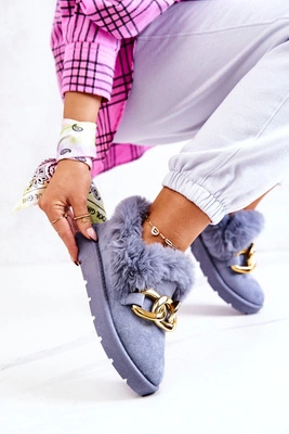 Ocieplane Botki Śniegowce Z Futerkiem Szare Bessie