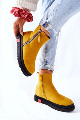 Zamszowe Botki Sztyblety Na Platformie Żółte Nessa