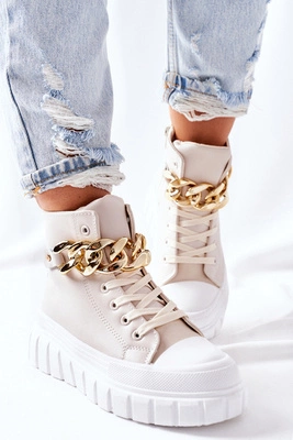 Damskie Papcie Złoty Łańcuch Beżowe Ardrums