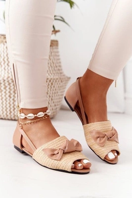 Płaskie Sandały Z Plecionką Lu Boo Beżowe