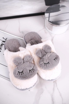 Dziecięce klapki z futerkiem i gumką szare Fluffy