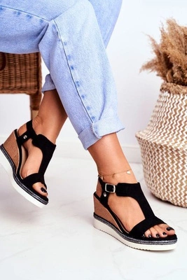 Lu Boo Damskie Klapki Czarne Zamszowe Seniorita