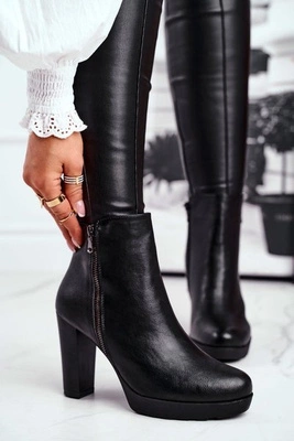 Damskie Botki Na Słupku Zamek z Przodu Czarne Save Me