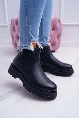 Botki Damskie Płaski Obcas Ciepłe Czarne Orion