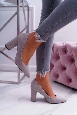 Czółenka Damskie Na Słupku Panterki Szare Ferri