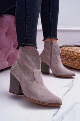 Botki Damskie Na Obcasie Skóra Zamsz Cappuccino Nicole 2433