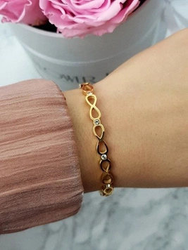 Damska Bransoleta Stalowa Z Cyrkonią Nieskończoność Złota Glam