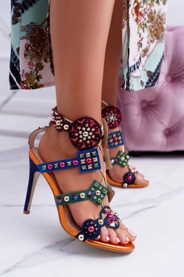 +2Sandały Na Szpilce Dżety Ćwieki Rockers Wielokolorowe