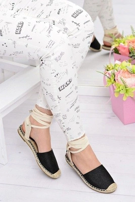 Lu Boo | Czarne Brokatowe Lniane Espadryle Fairy