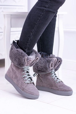 Szare Zamszowe Botki LU BOO Timberki z Futrem