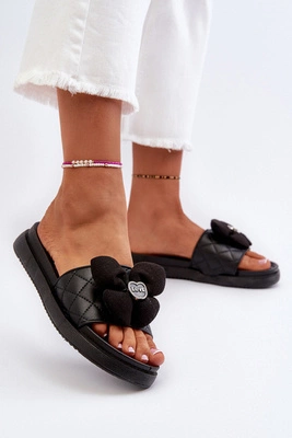 Klapki Damskie Z Ozdobą Na Niskiej Platformie Czarne Cedrella