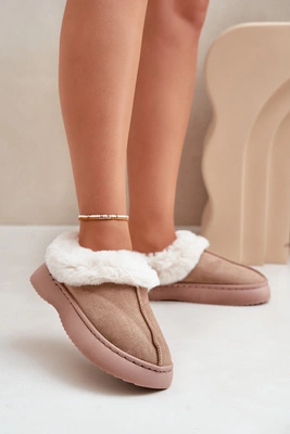 Kapcie Śniegowce Damskie Na Grubej Podeszwie Z Futerkiem Ciemnobeżowe Doriola