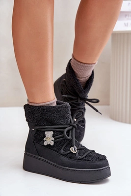 Śniegowce Damskie Z Przypinkami I Futerkiem Typu Baranek Czarne Almatiza