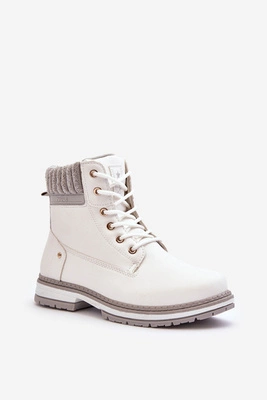Damskie Skórzane Trapery Ocieplane Białe Katalis
