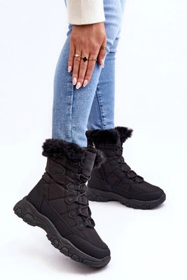 Śniegowce Sznurowane Damskie Z Futerkiem Czarne Lexxina