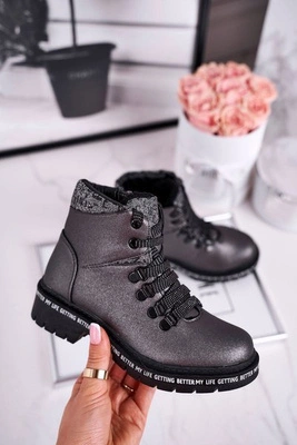 Dziecięce młodzieżowe botki z kożuszkiem szare Snowflake