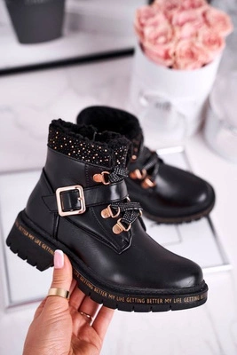 Dziecięce młodzieżowe botki z kożuszkiem czarne Rhythm