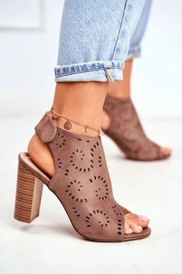 Sandały Damskie Na Słupku Ażurowe Na Rzep Khaki Rules