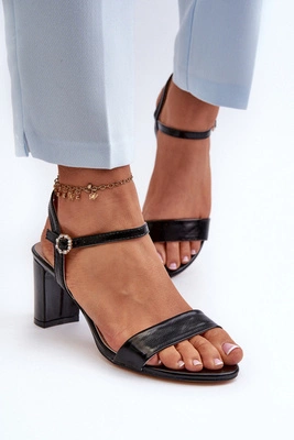 Eleganckie Sandały Na Słupku Z Ozdobą Czarne Trasea