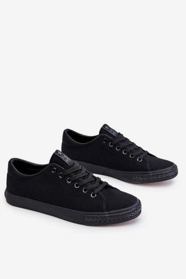 Damskie Skórzane Wiązane Klasyczne Trampki Czarne Misima