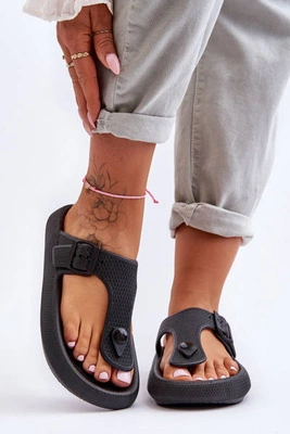 Damskie Piankowe Klapki Japonki Czarne Roux