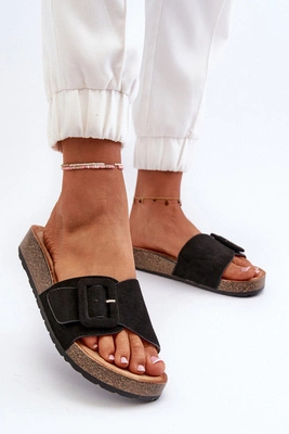 Klapki Damskie Z Klamrą Eko Zamszowe Czarne Laeltia