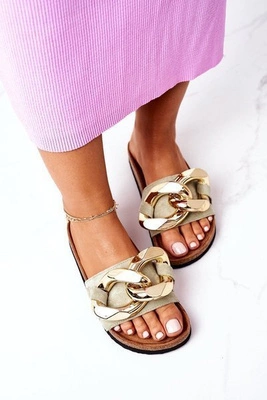 Klapki Na Korku Z Łańcuchem S.Barski SB001 Miętowe