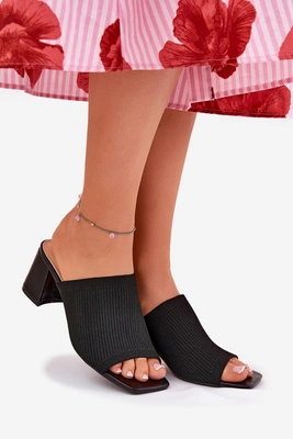 Klapki Damskie Na Obcasie Typu Słupek Czarne Wenilan