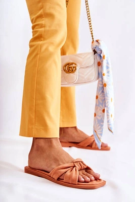 Klasyczne Zamszowe Klapki Damskie Camel Casilda