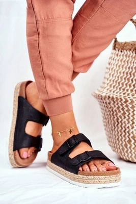 Damskie Klapki Na Platformie Czarne RICH