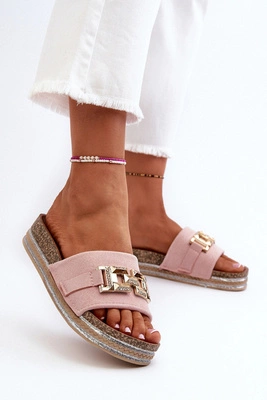 Damskie Klapki Z Wycięciem Różowe Złote Lumossa
