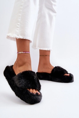 Damskie Klapki Na Platformie Z Klamrami Czarne Lolpey