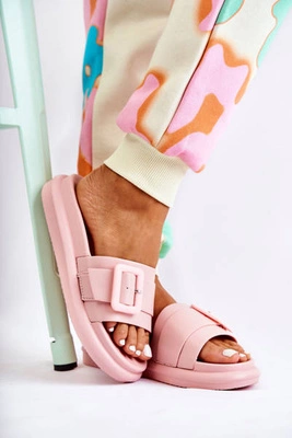 Damskie Skórzane Klapki Z Klamrą Różowe Devia