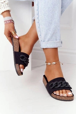 Skórzane Klapki Z Łańcuszkiem Nicole 2652 Czarne