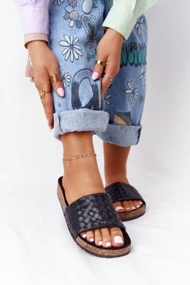 Klapki Na Korkowej Podeszwie Czarne Boa