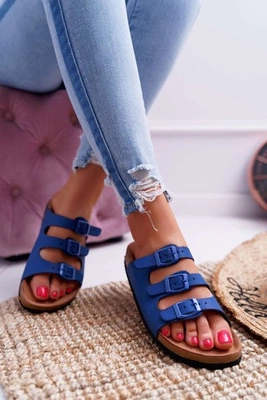 +3Klapki Damskie Eleganckie Na Klocku Zamszowe Chabrowe Valencia