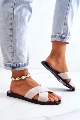 Gumowe Klapki Damskie Beżowe Let's Swim