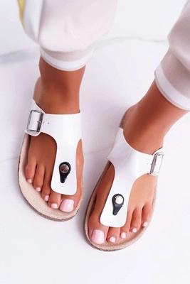 +4Klapki Damskie Japonki Na Korku Lakierowane Białe Palette