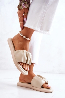 Damskie Modne Skórzane Klapki Beżowe Savirra