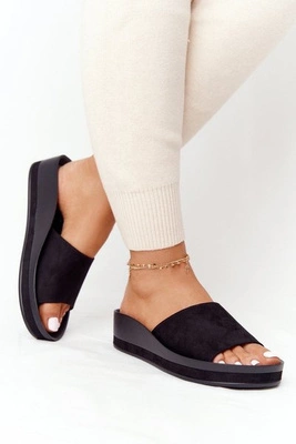 Skórzane Klapki Na Koturnie Laura Messi 2272 Czarne