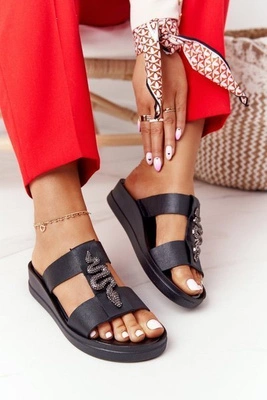 Damskie Klapki Profilowana Wkładka Z Kokardką Czarne Juicy