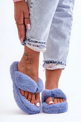 +5Damskie Futrzane Klapki Papcie Niebieskie Elma